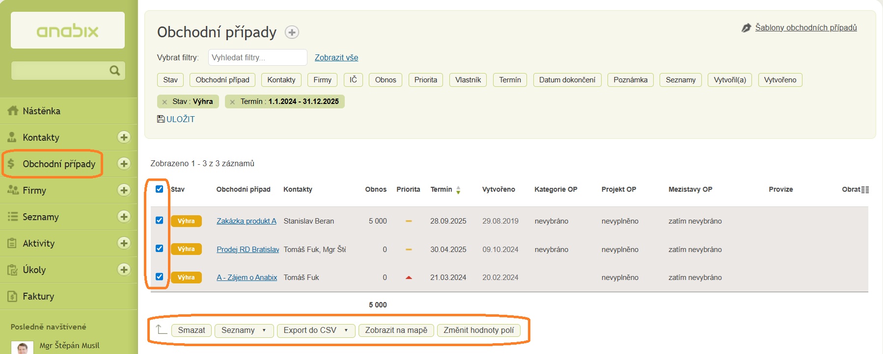 Práce s přehledy a filtry v Anabix CRM