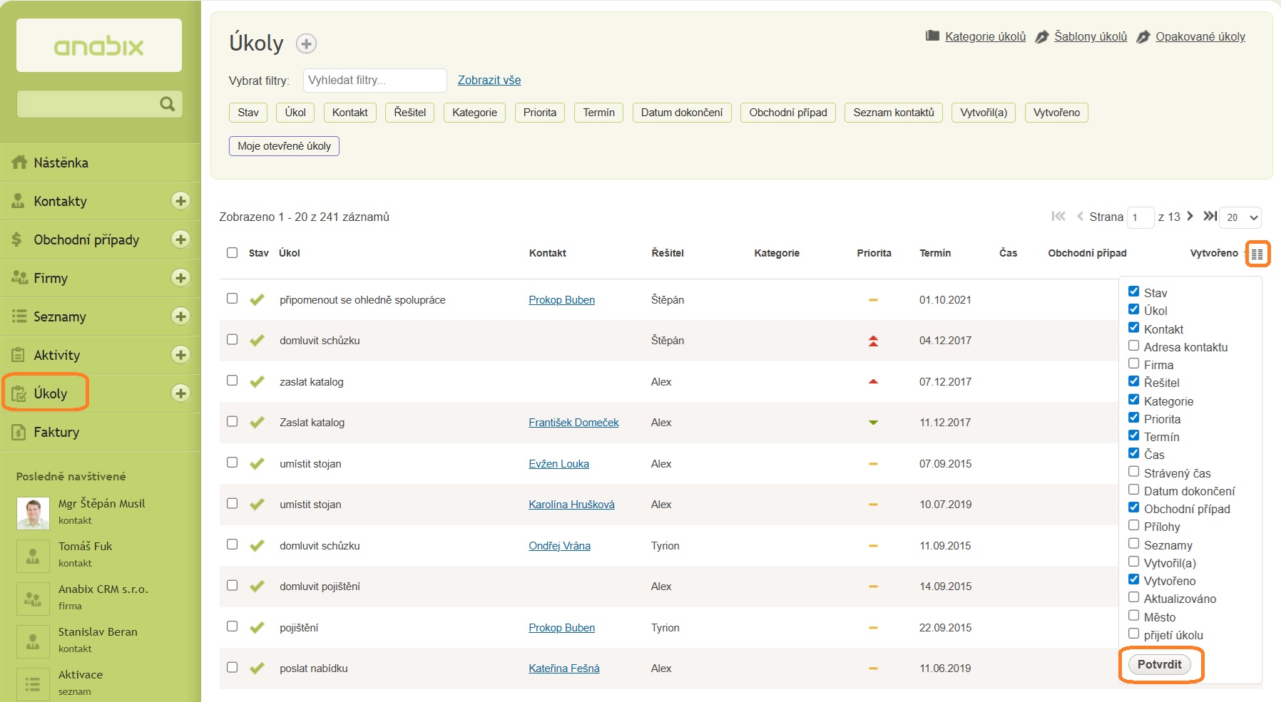 Přehled úkoly v Anabix CRM